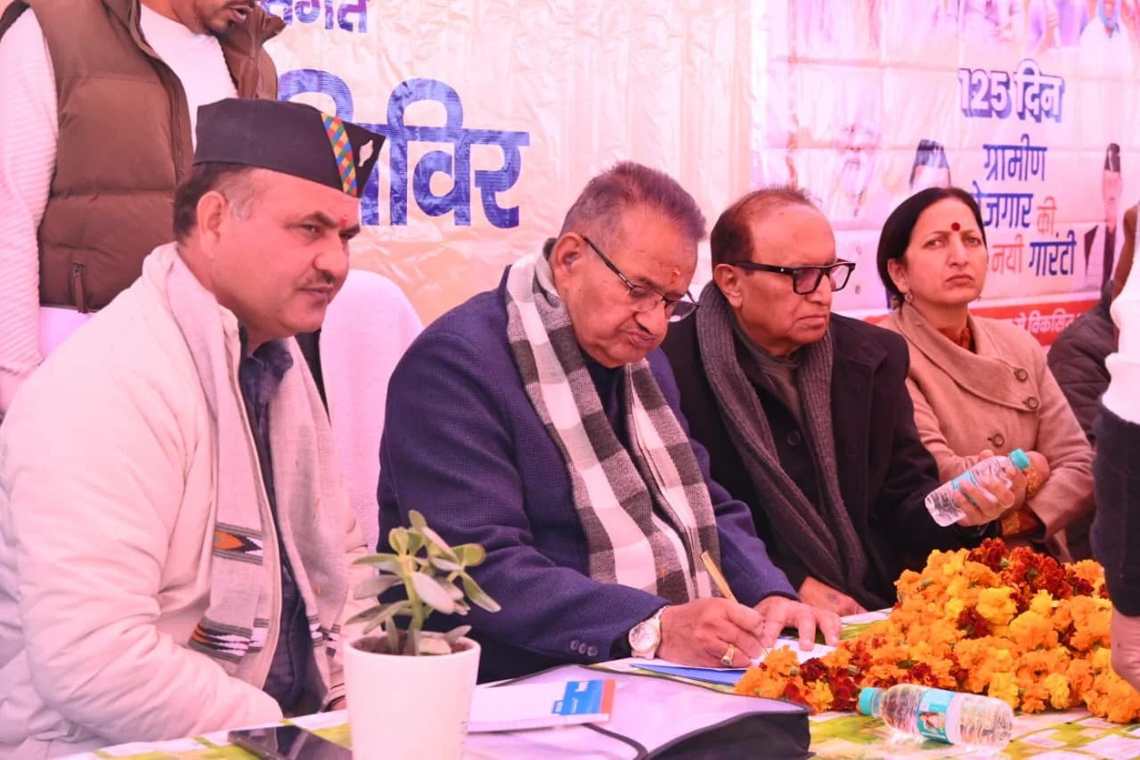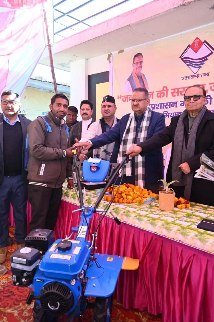 इस अवसर पर कैबिनेट मंत्री गणेश जोशी ने विभिन्न विभागों द्वारा लगाए गए स्टालों का निरीक्षण किया। महिला सशक्तिकरण एवं बाल विकास विभाग द्वारा तीन महिलाओं को मुख्यमंत्री महालक्ष्मी किट तथा 10 लाभार्थियों को बेबी किट वितरित की गई। साथ ही, विभिन्न विभागों द्वारा ग्रामीणों को जनकल्याणकारी योजनाओं की जानकारी प्रदान की गई। संयुक्त मजिस्ट्रेट ने कहा कि जनता की समस्याओं का त्वरित समाधान करना प्रशासन की सर्वोच्च प्राथमिकता है। उन्होंने संबंधित विभागों को निर्देश दिए कि प्राप्त शिकायतों का समयबद्ध एवं प्रभावी निस्तारण सुनिश्चित किया जाए। शिविर में कृषि विभाग द्वारा 80ः सब्सिडी पर 6 पावर वीडर एक स्प्रे मशीन कृषकों को उपलब्ध करायी गई, वहीं शिविर में चार दिव्यांग प्रमाण पत्र, 07 आयुष्मान कार्ड भी मौके पर निर्गत किए गए।