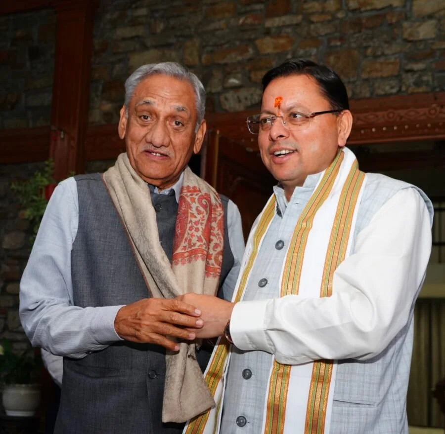 मुख्यमंत्री पुष्कर सिंह धामी ने जगद्गुरु शंकराचार्य स्वामी राजराजेश्वराश्रम महाराज से की शिष्टाचार भेंट