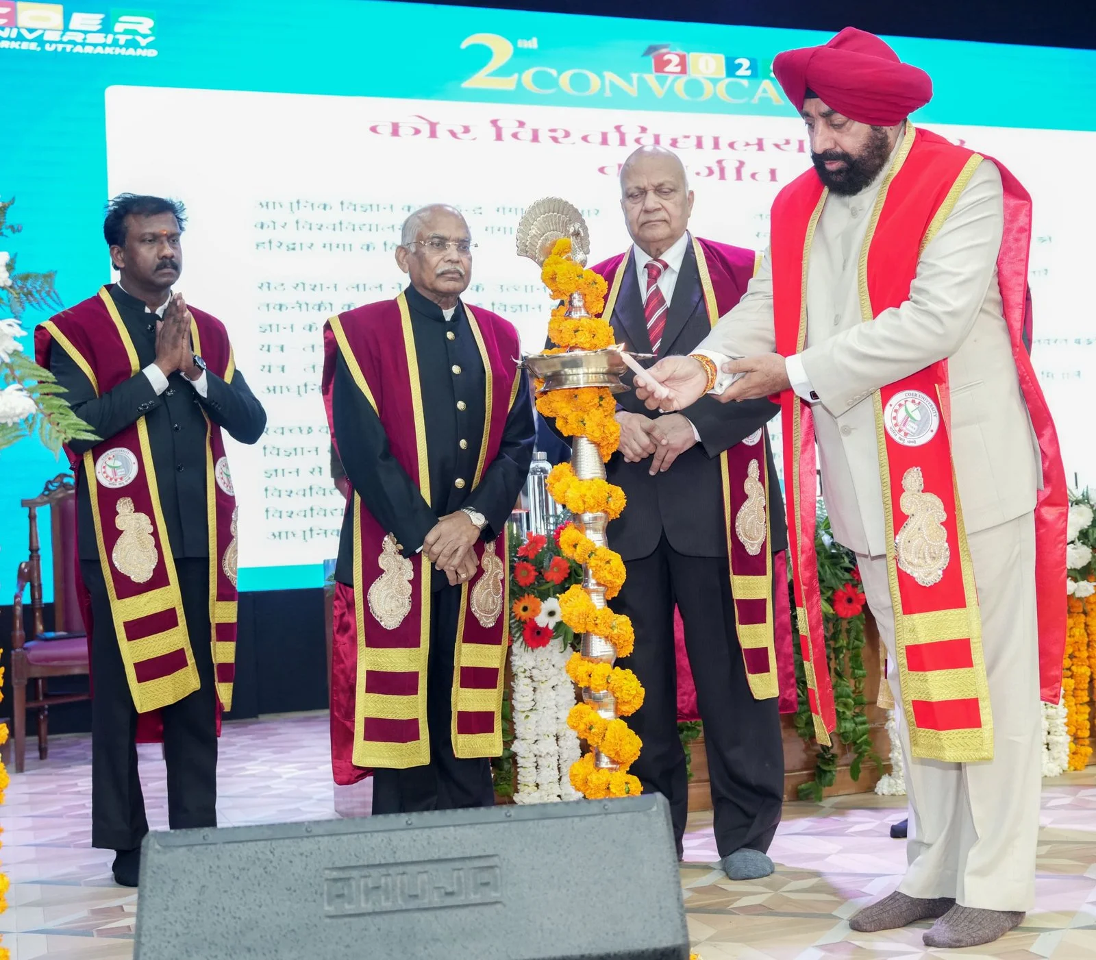 हरिद्वार : राज्यपाल लेफ्टिनेंट जनरल गुरमीत सिंह (से नि) ने आज कोर विश्वविद्यालय, रुड़की के दूसरे दीक्षांत समारोह में प्रतिभाग कर विद्यार्थियों को डिग्री और मेडल प्रदान किए। इस अवसर पर दीक्षांत समारोह को संबोधित करते हुए राज्यपाल ने विद्यार्थियों को राष्ट्र निर्माण में सक्रिय भूमिका निभाने का आह्वान किया। उन्होंने कहा कि दीक्षांत केवल डिग्री प्राप्त करने का अवसर नहीं है, बल्कि यह आत्मबोध से राष्ट्रबोध की ओर बढ़ने की जागरूक यात्रा का आरंभ है।