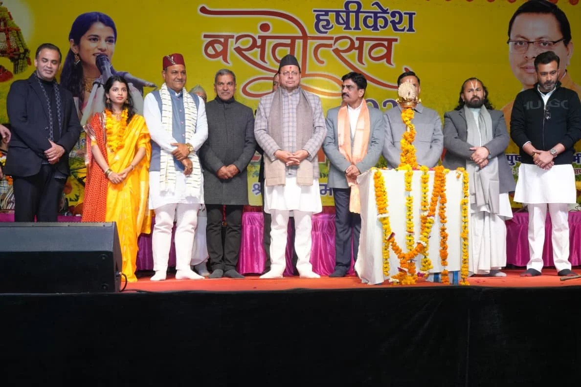ऋषिकेश : मुख्यमंत्री पुष्कर सिंह धामी आज भरत मंदिर, ऋषिकेश में आयोजित वसंतोत्सव 2026 – मैथिली ठाकुर नाइट में सम्मिलित हुए। गंगा के पावन तट पर आयोजित इस भव्य एवं भक्तिमय कार्यक्रम में बड़ी संख्या में साधु-संतों, स्थानीय नागरिकों, जनप्रतिनिधियों तथा देश-प्रदेश के विभिन्न कोनों से आए श्रद्धालुओं ने सहभागिता की।