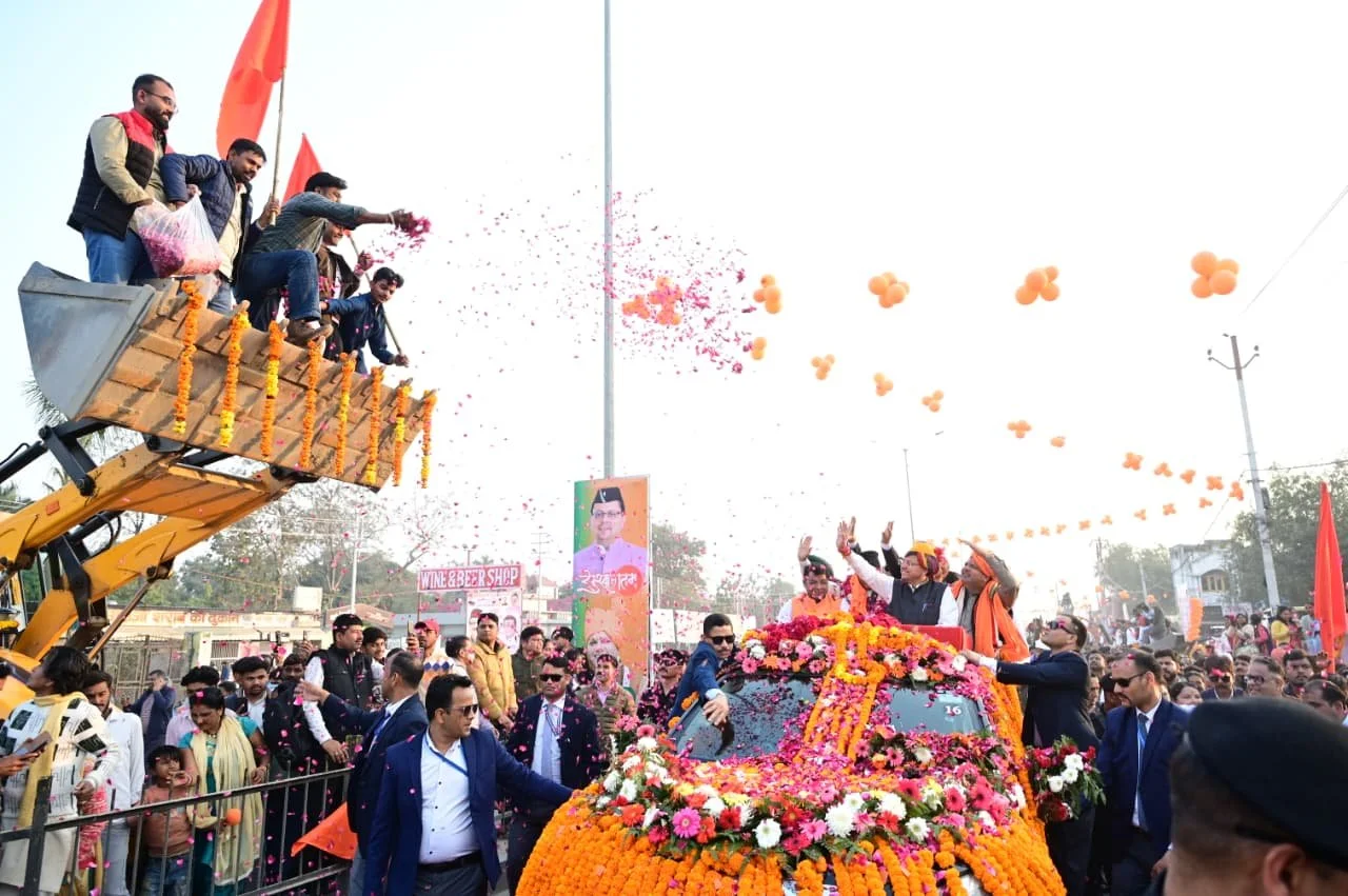 मुख्यमंत्री धामी ने त्रिशूल चौक का लोकार्पण किया उससे पूर्व उन्होंने कांवरियों की पैर पखारे एवं उनको अंगवस्त्र व पुष्प माला भेंट कर उनका अभिवादन किया, इसके उपरांत त्रिशूल चौक से सरस मेला कार्यक्रम स्थल गांधी पार्क तक आयोजित शिव बारात में प्रतिभाग किया। शिव बारात में माननीय मुख्यमंत्री का विभिन्न संगठनों व जनता द्वारा फूलमाला, पुष्पवर्षा कर भव्य स्वागत किया।