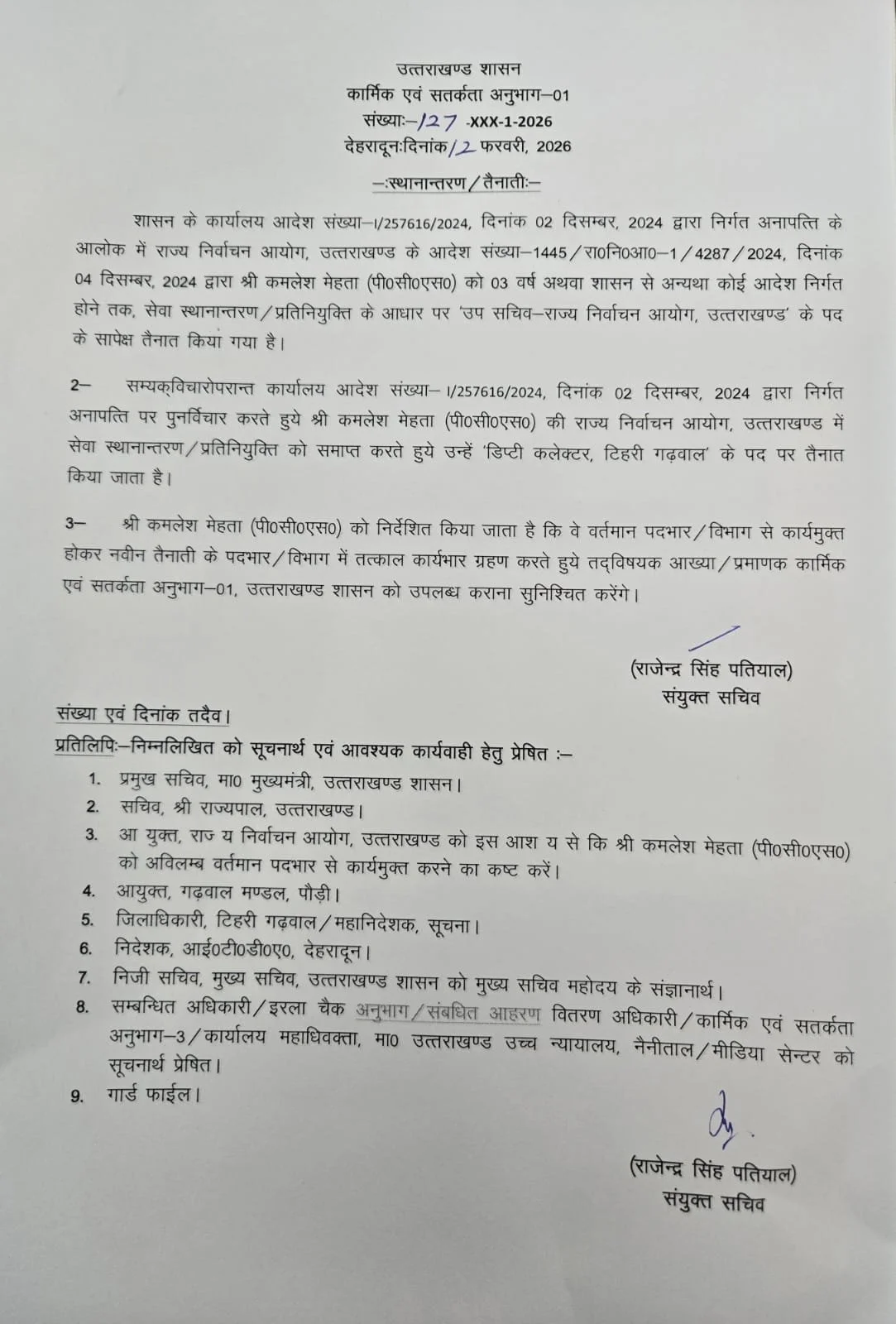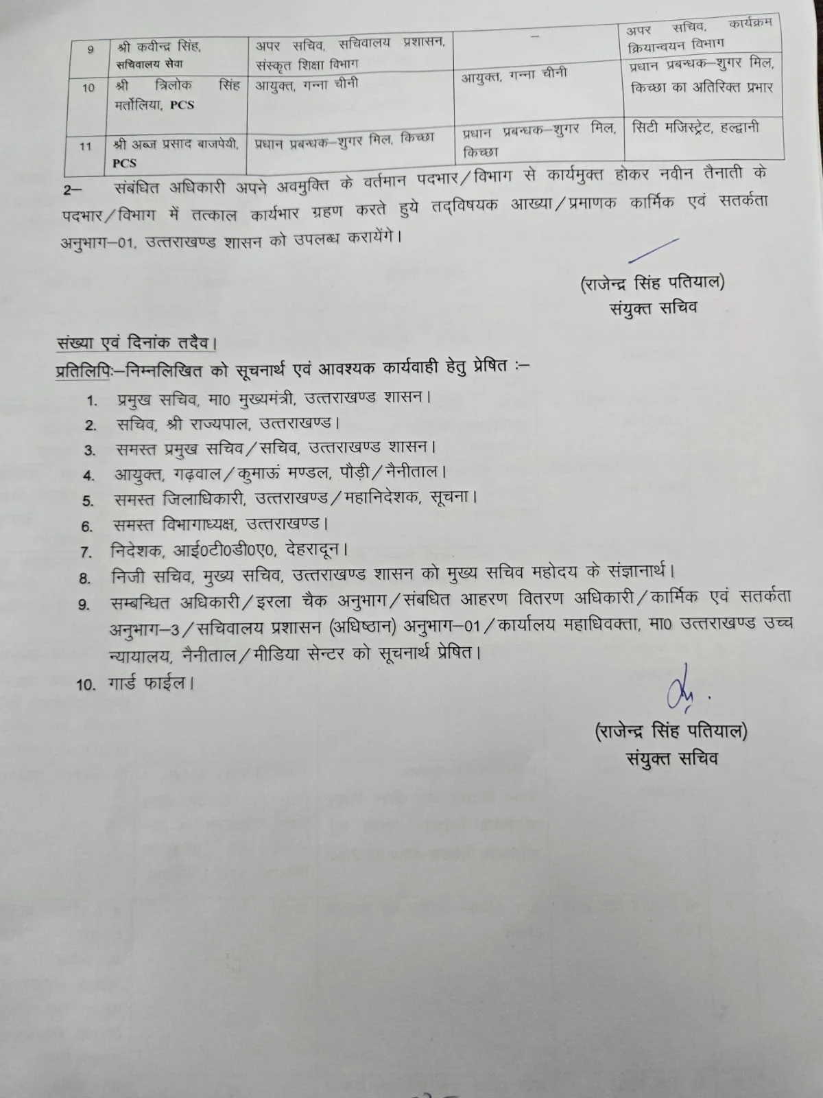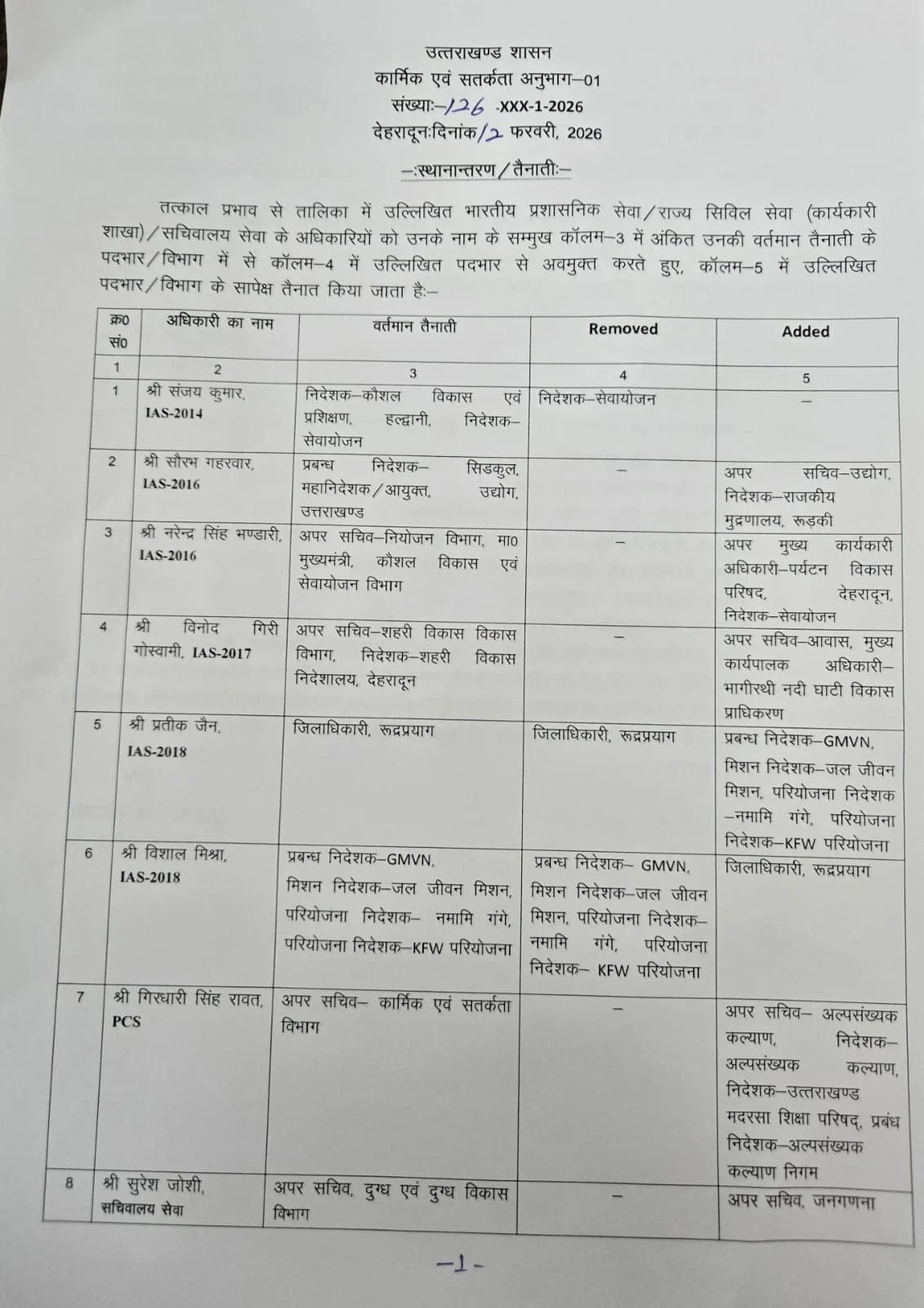 उत्तराखंड शासन ने किए IAS और PCS अधिकारियों के ट्रांसफर, रुद्रप्रयाग के बदले डीएम, देखों सूचि ………..